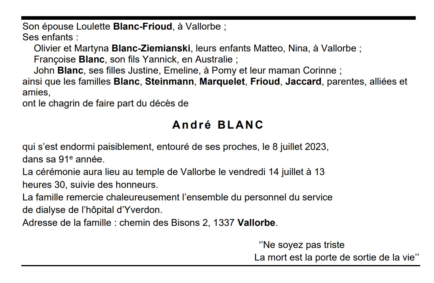 Avis mortuaire PFG