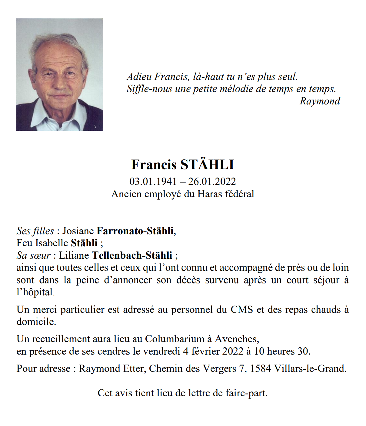 Avis mortuaire PFG