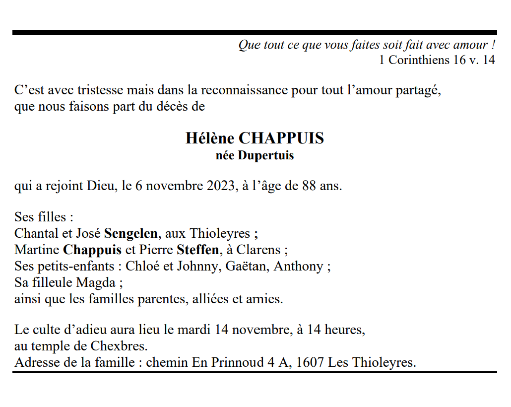 Embedded thumbnail for Hélène CHAPPUIS née Dupertuis > Galerie > Video or Image