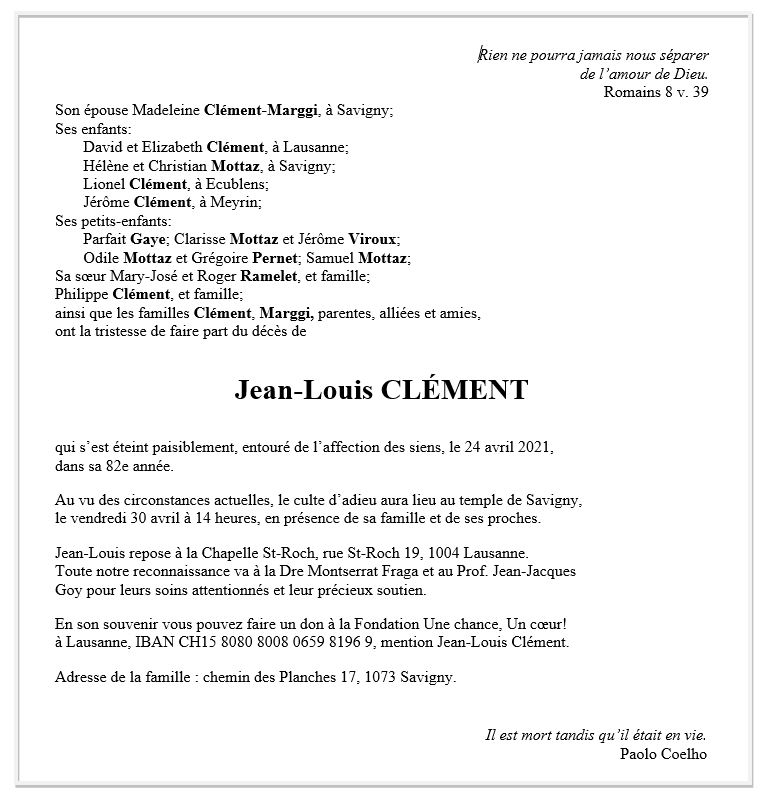Jean-Louis CLEMENT 11 juin. 1939 - 24 avr. 2021 Avis mortuaire PFG Télecharger PDF Partager sur: Galerie PreviousNext PreviousNext