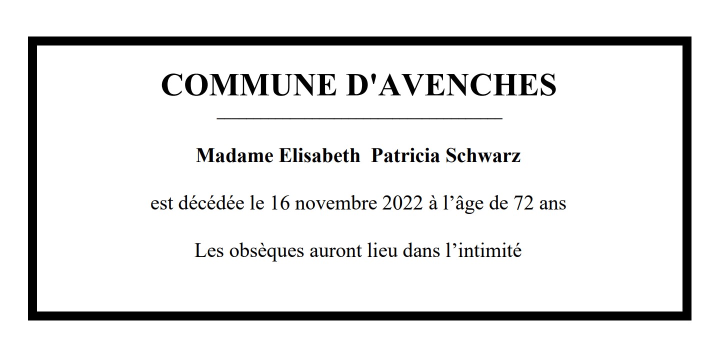 Madame Elisabeth Patricia Schwarz 03 juin. 1950 - 16 nov. 2022 Avis mortuaire PFG Télecharger PDF Partager sur: Galerie