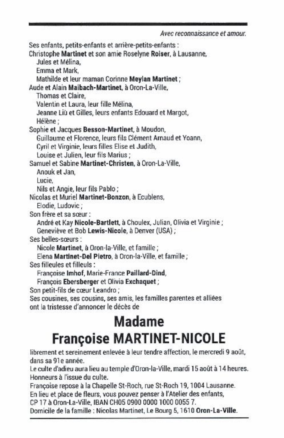 Madame Françoise MARTINET-NICOLE