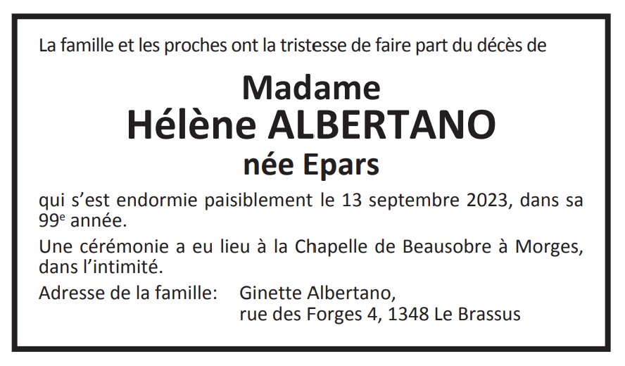Madame Hélène ALBERTANO née Epars
