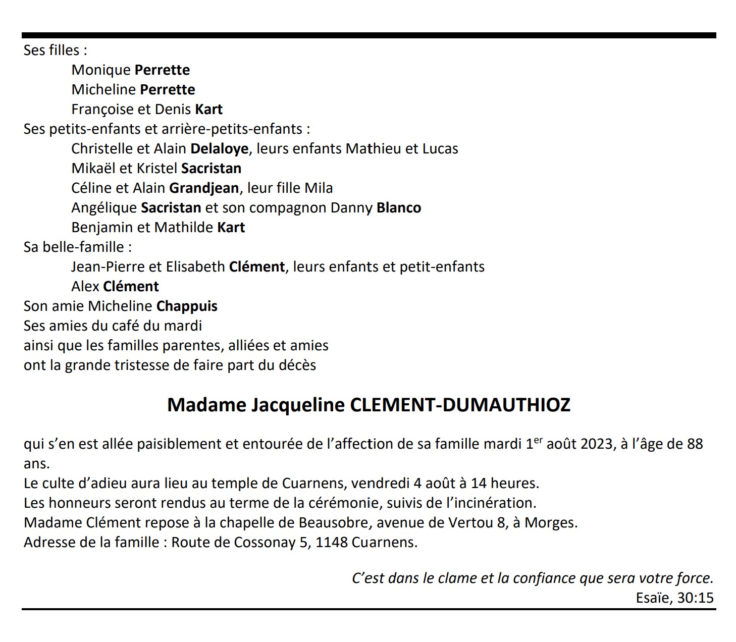 Madame Jacqueline CLEMENT-DUMAUTHIOZ