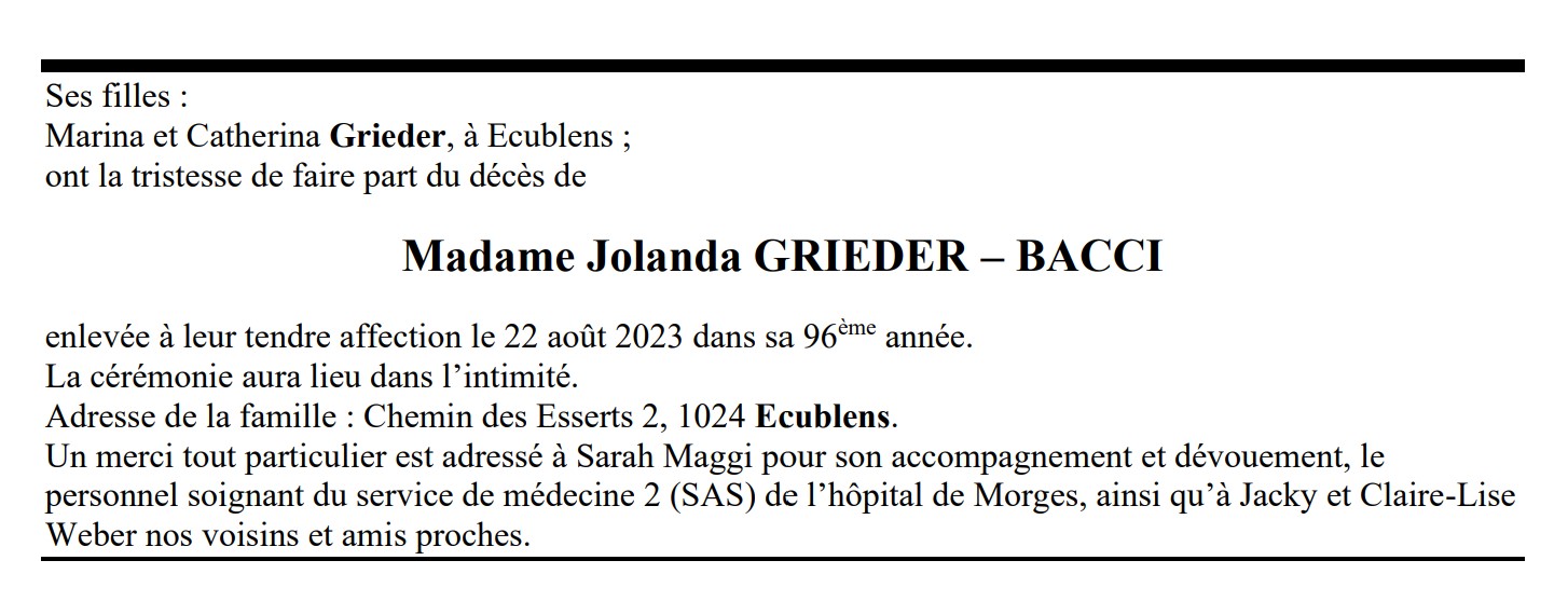 Madame Jolanda GRIEDER – BACCI