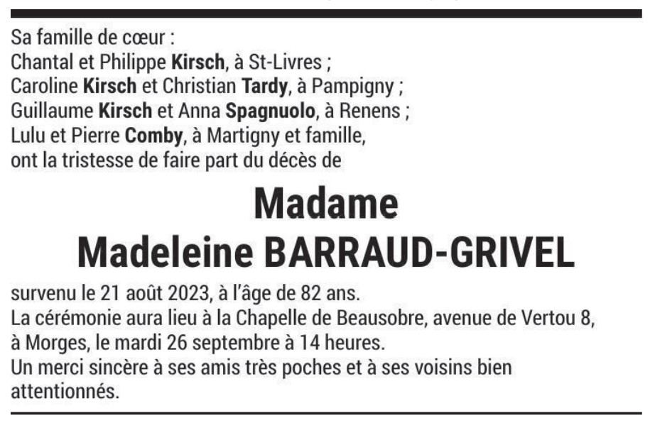 Madame Madeleine BARRAUD-GRIVAL