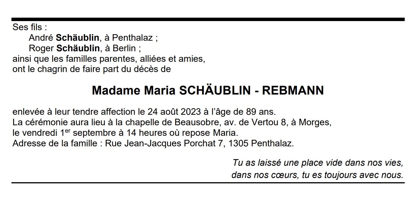 Embedded thumbnail for Madame Maria SCHÄUBLIN - REBMANN > Galerie > Video or Image