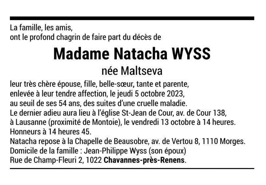Embedded thumbnail for Madame Natacha WYSS née Maltseva > Galerie > Video or Image