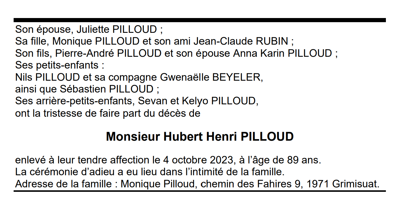 Monsieur Hubert Henri PILLOUD