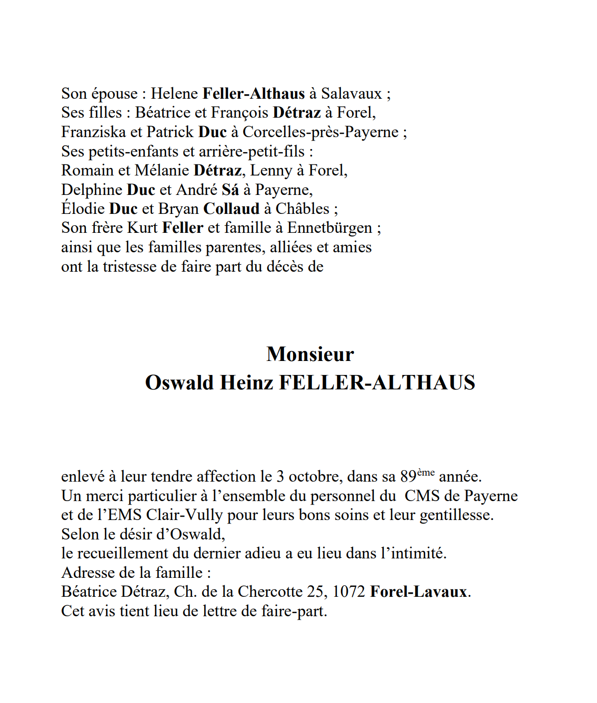 Monsieur Oswald Heinz FELLER-ALTHAUS