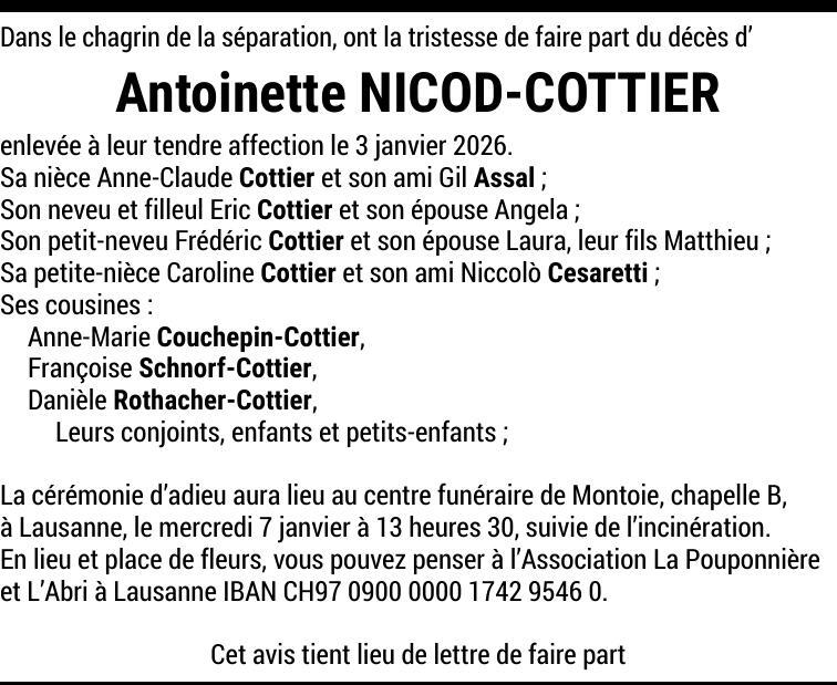 Madame Antoinette NICOD-COTTIER