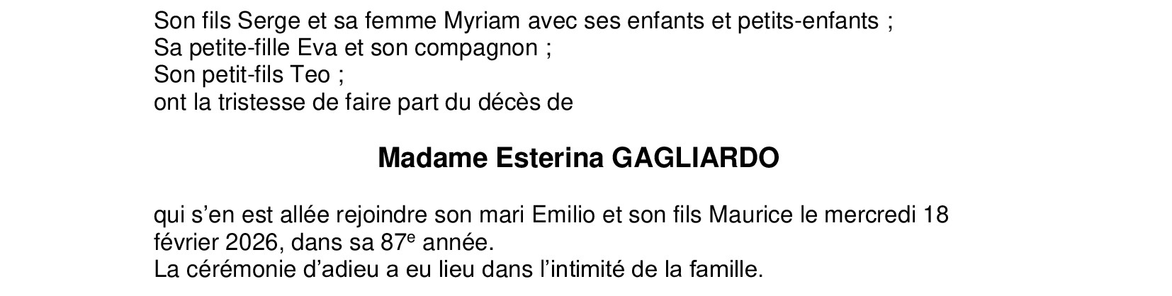 Madame Esterina GAGLIARDO