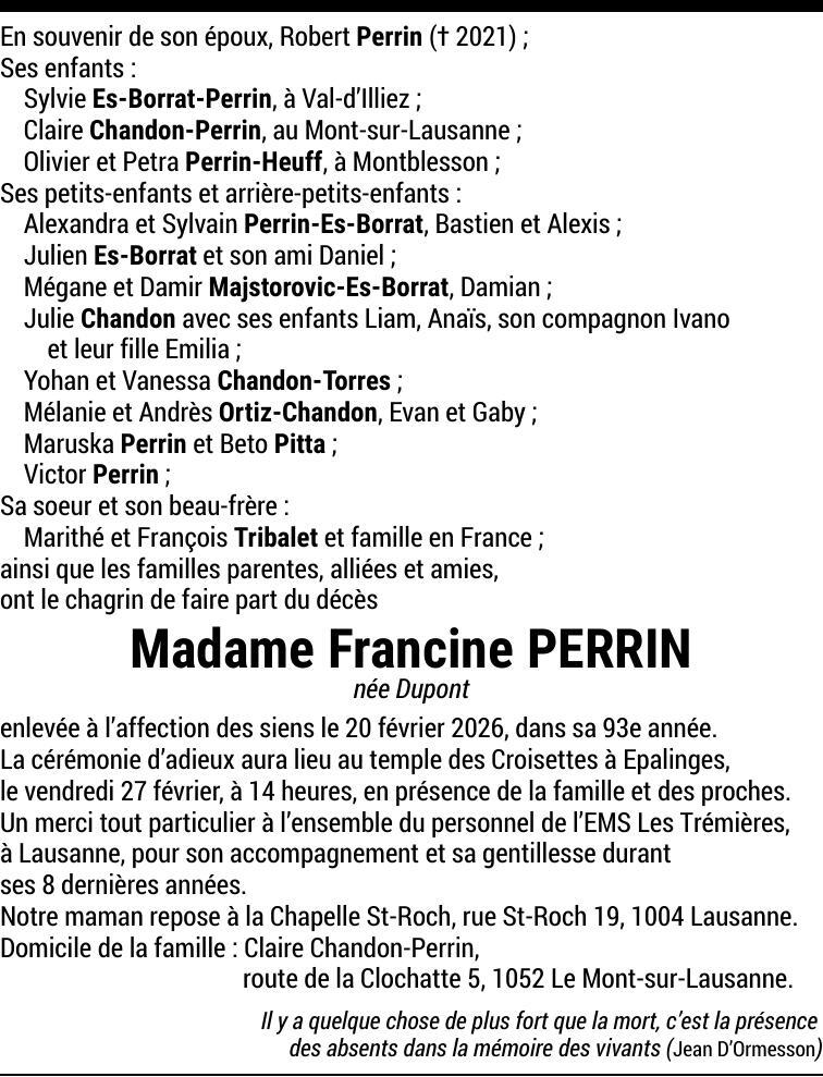 Madame Francine PERRIN-DUPONT