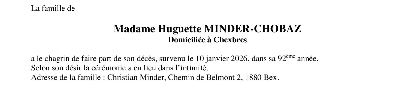Madame Huguette MINDER