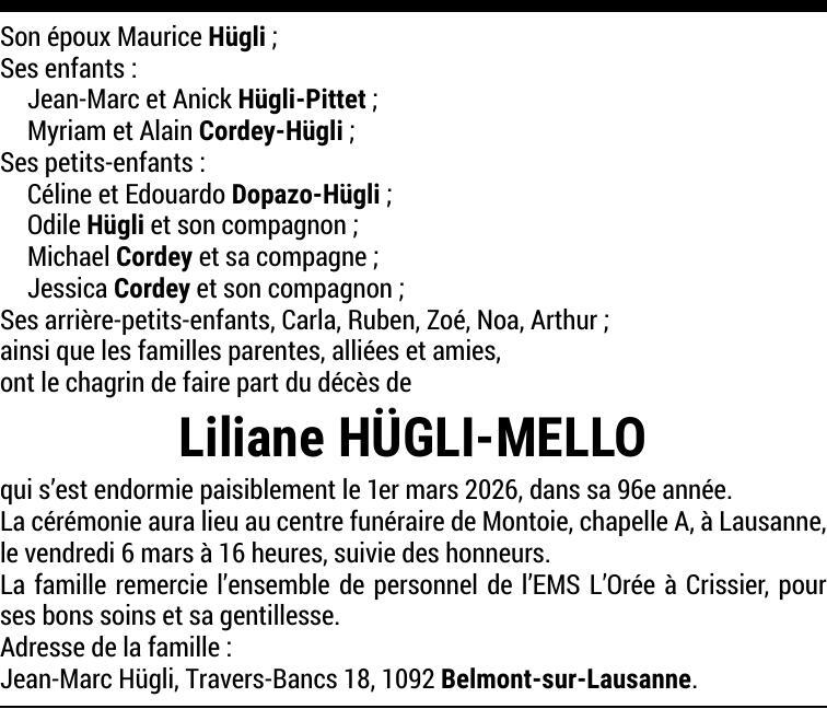 Madame Liliane HÜGLI-MELLO