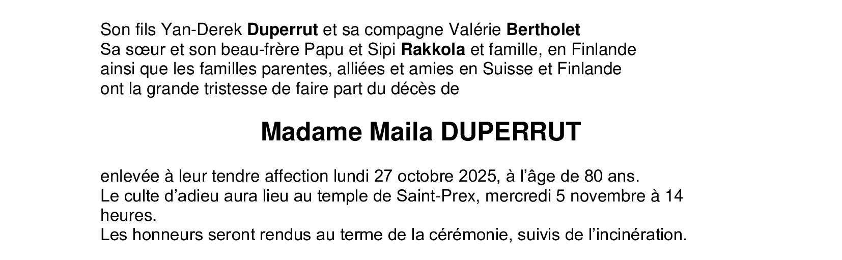 Madame Maila DUPERRUT