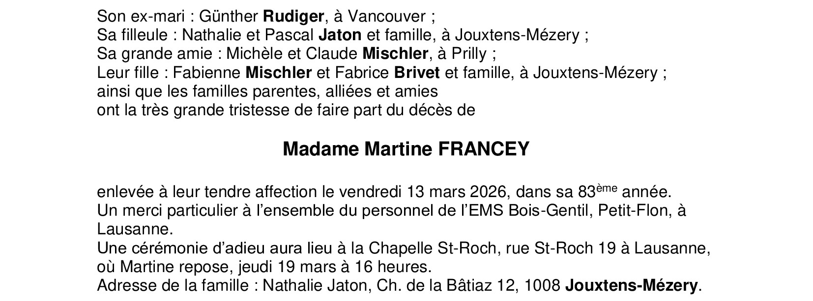 Madame Martine FRANCEY