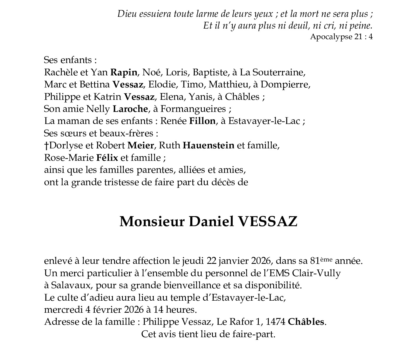 Monsieur Daniel VESSAZ