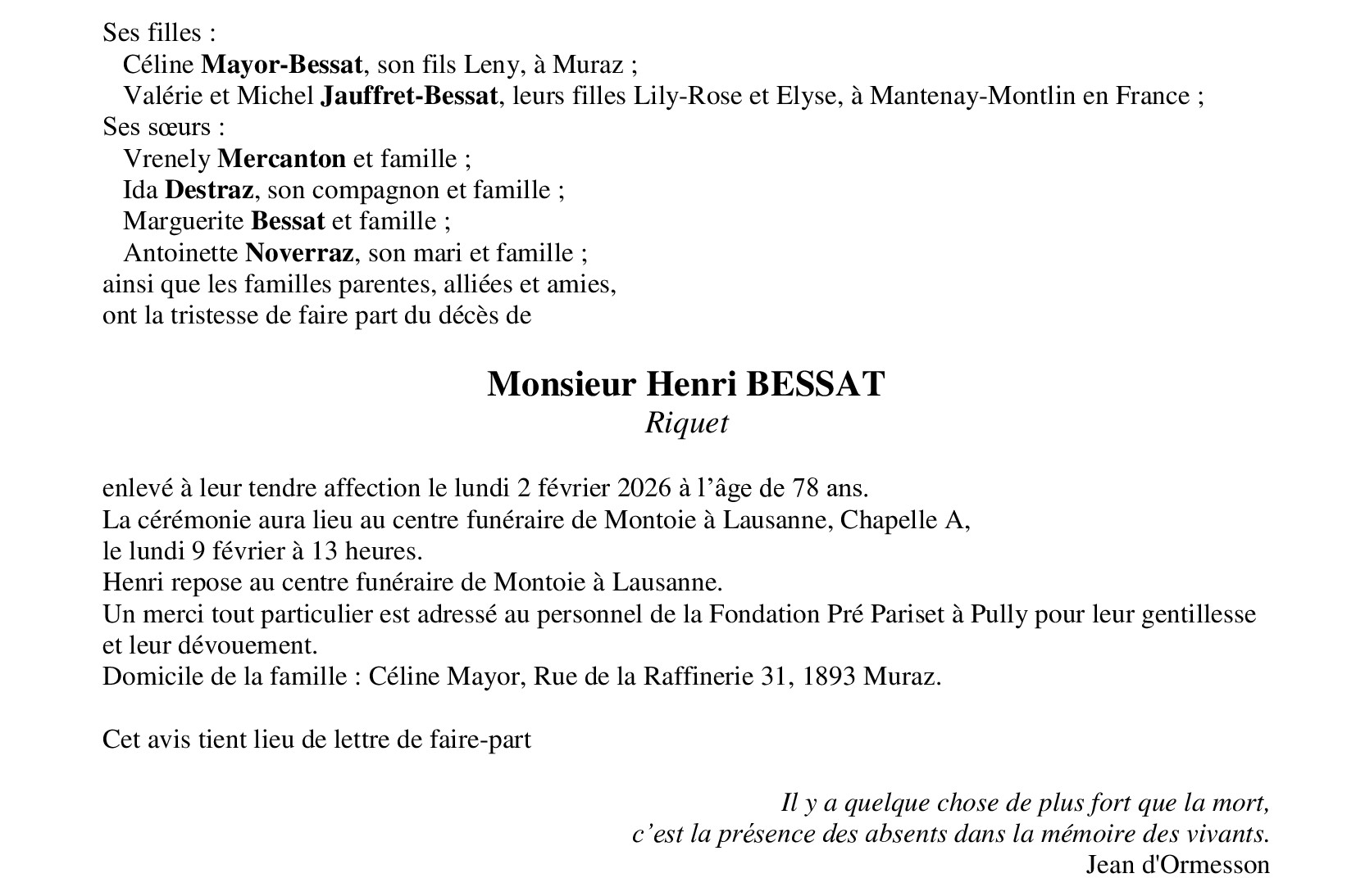 Monsieur Henri BESSAT