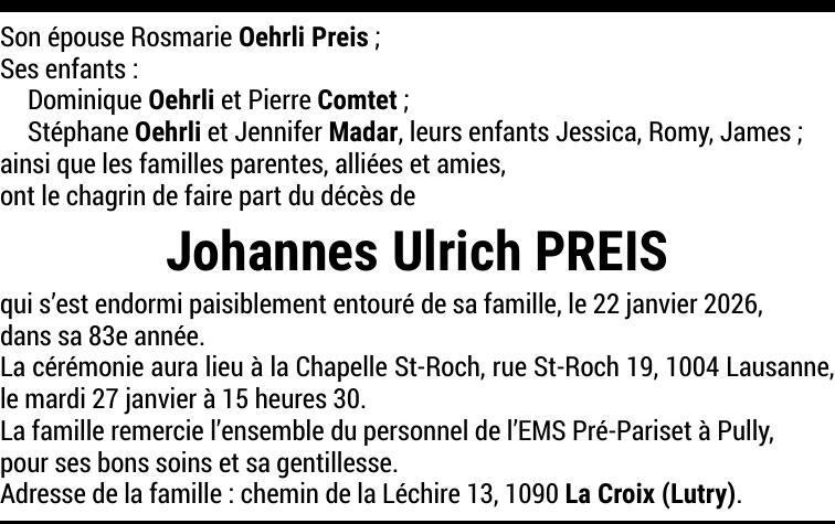 Monsieur Johannes Ulrich PREIS
