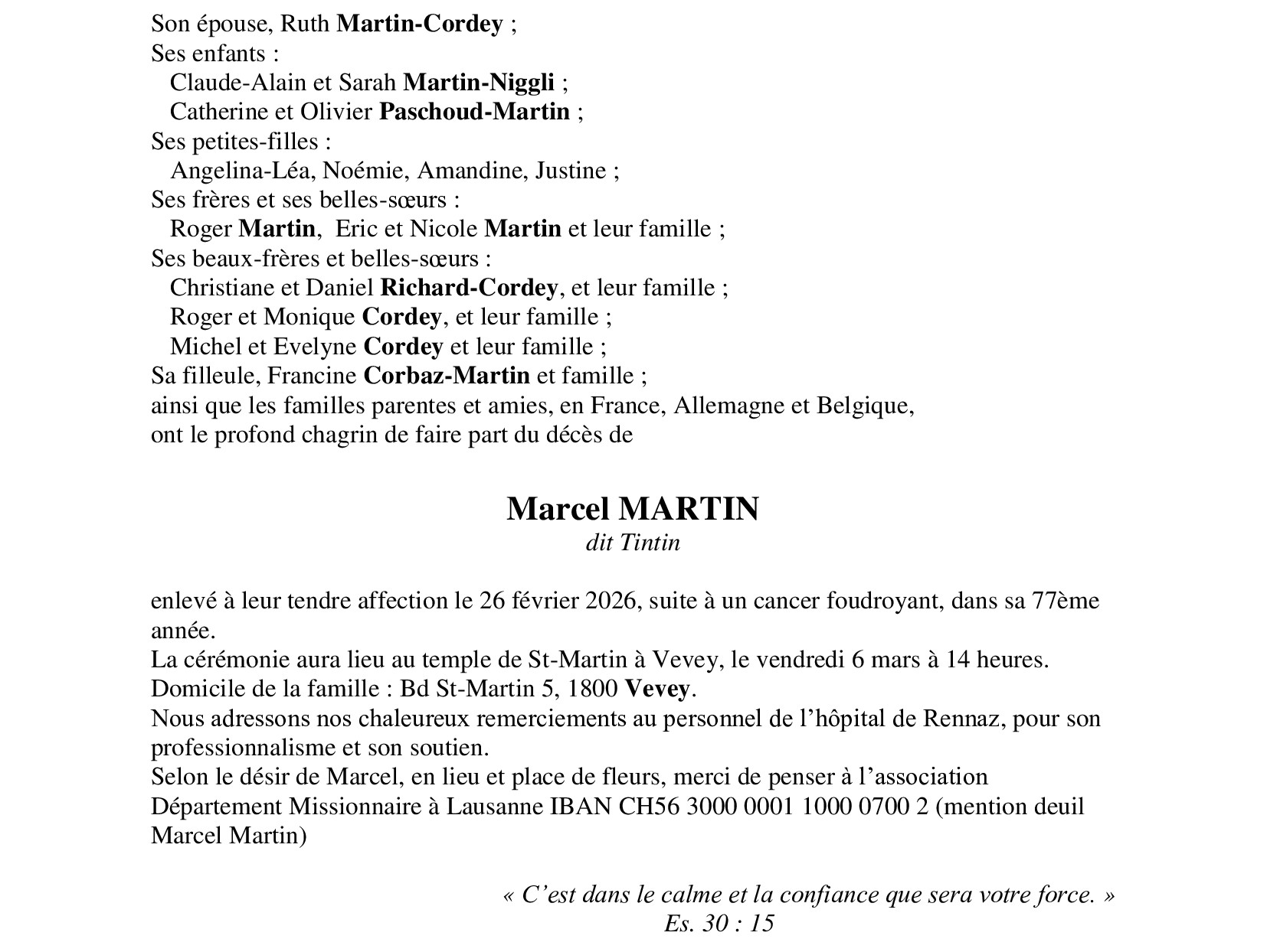 Avis mortuaires / Remerciements