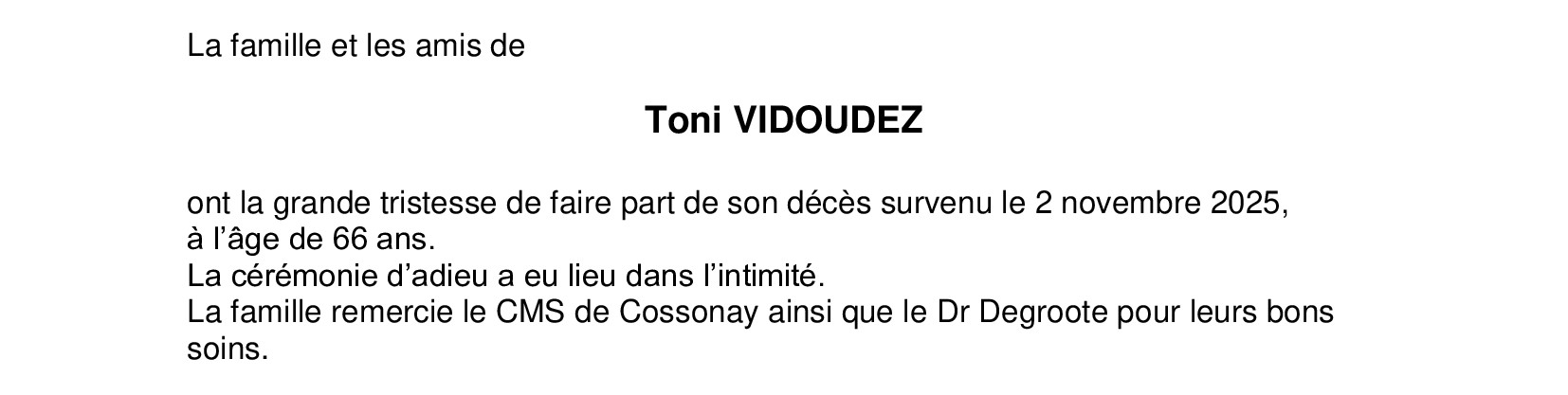 Monsieur Toni VIDOUDEZ